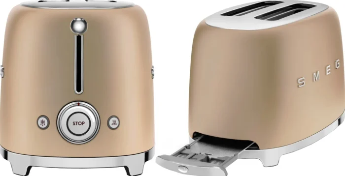 SMEG TSF01 i champagne/gull er mer enn bare et kjøkkenapparat; det er et visuelt statement som kombinerer 50-talls estetikk med moderne presisjonsteknologi. Den lakkerte stålfinishen er ekstremt holdbar og gir en premium følelse som umiddelbart løfter inntrykket av ethvert moderne eller klassisk kjøkken. Ved å velge dette ikonet får du en maskin som er like mye et kunstverk som en funksjonell brødrister.