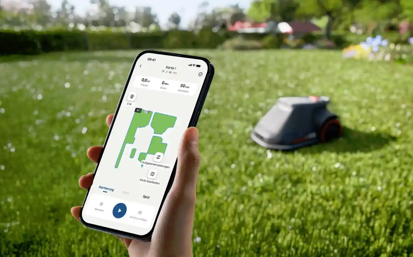En annen fordel ved kamerabasert navigasjon er evnen til å håndtere flere soner. Hvis du har en forhage og en bakhage forbundet med en smal passasje eller heller, kan E15 enkelt navigere mellom dem uten behov for komplekse ledningsføringer. Du kan styre hver sone individuelt i appen og sette opp ulike klippeplaner.