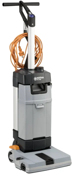 Nilfisk SC 100 E Basic plasserer seg i skjæringspunktet mellom profesjonell bruk og avansert hjemmebruk. Dette er en kompakt modell av typen “gå bak”, ideell for mindre butikker, kontorer, bensinstasjoner eller store hjem. Den er nettdrevet (230V), noe som betyr ubegrenset driftstid og jevn, kraftig motorstyrke uten behov for lading.