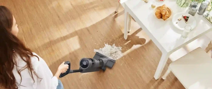 Dreame H12 Pro FlexReach markerer seg som en svært allsidig modell i vår gulvvasker test, spesielt utviklet for å nå vanskelige steder. Med sitt innovative 180-graders “lie-flat” design kan denne enheten legges helt flatt, noe som gjør det enkelt å vaske under lave møbler som sofaer og senger uten å miste sugekraft. Dette løser et vanlig problem mange har med tradisjonelle skaftstøvsugere.