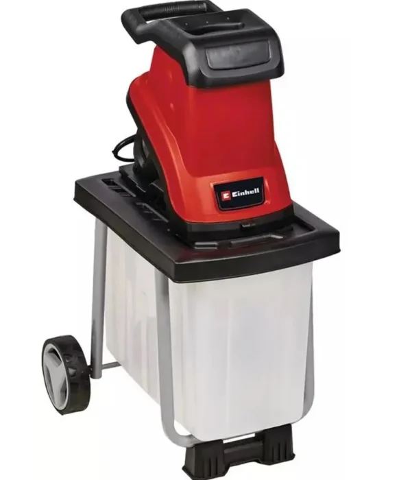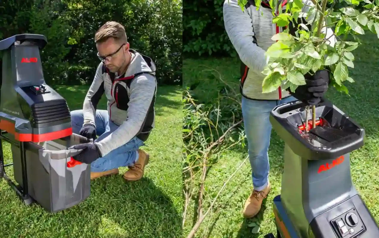 Enheten er forsynt med pålitelig overbelastningsvern og en dedikert sikkerhetsbryter, noe som gir trygghet under lange økter. Plastbeholderen på 55 liter rommer store mengder hageflis, og hele toppen kan enkelt demonteres for en utrolig kompakt lagring i garasjen. Dette gir en praktisk løsning, selv for deg med begrenset lagringsplass i hverdagen.