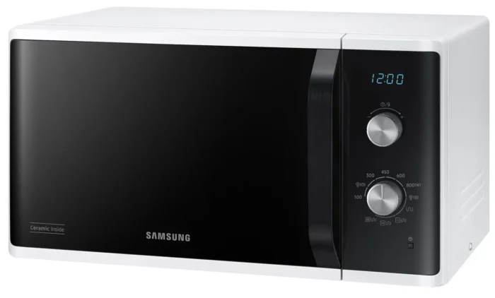 Samsung MG23K3614AW er en praktisk og stilren frittstående ovn med en kraftig grillfunksjon. Med en kapasitet på 23 liter passer den utmerket for små til mellomstore husholdninger. Den virkelige stjernen her er det keramiske emaljebelegget på innsiden, som er eksepsjonelt slitesterkt, ripebestandig og utrolig lett å holde rent for en varig hygienisk overflate.