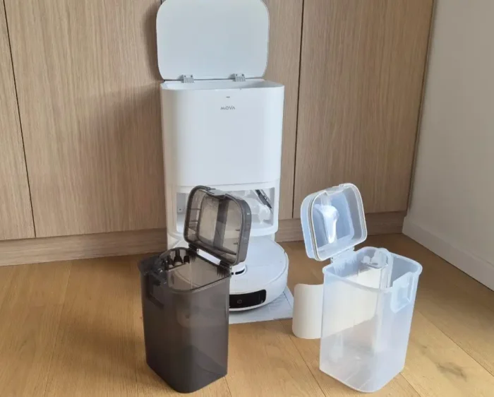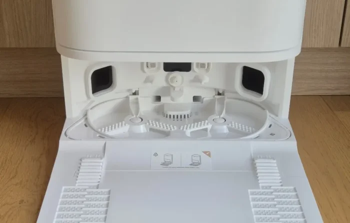 Men friheten stopper ikke ved støvtømming. Stasjonen håndterer også hele moppeprosessen selvstendig. Den er utstyrt med store tanker for både rent og brukt vann (henholdsvis 4,5 L og 4 L). Etter hver rengjøringsøkt vasker stasjonen moppene automatisk, slik at skitt og bakterier fjernes før de får satt seg i tekstilen.
