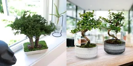 - Innendørs: Ficus (Ginseng eller Retusa), Dvergjade og Kinesisk alm.