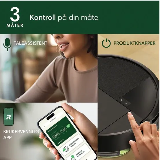 - App: Roomba Home – Wi-Fi og Bluetooth-kompatibel.