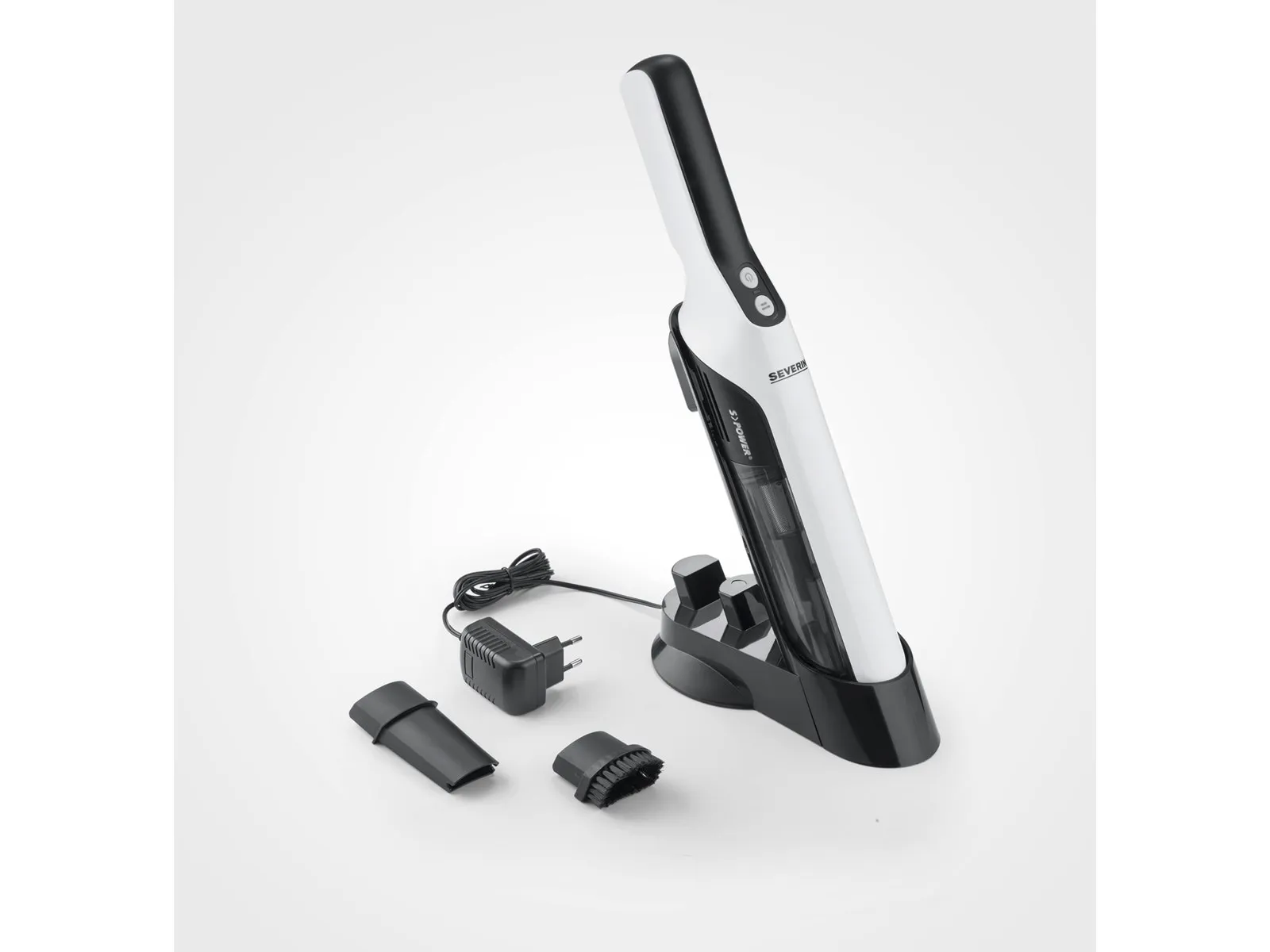 I testene viste Severin HV 7140 sin allsidighet med justerbart sug. Velg lav for støvsuging av møbler eller høy for bil. Håndgrepskontrollene er intuitive, og designet i svart-hvit passer ethvert interiør.